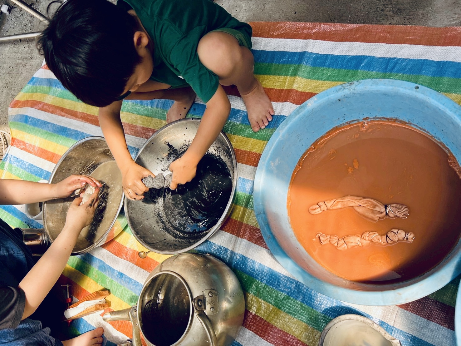 ナカノが採ってきた山や畑の土をつかって、布を染めていきます。